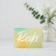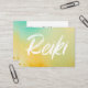 This design is girly chic & feminine as well strong. It is an excellent choice for someone seeking a Reiki card which is artistic, abstract, and modern as well as pretty, beautiful, chic and artsy for their Reiki Master or Reiki Practitioner branding. The white Reiki typography text is on an artistic abstract modern chic beautiful captivating unique artistic watercolor gold yellow turquoise and peach background.