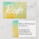 * Energy Healing Reiki Practitioner or Master Business Card With A Unique Watercolor Artsy Beautiful Amazing Abstract Deep Gold Yellow Turquoise and peach background. *