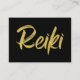 * Mighty Size - Reiki Master or Reiki Practitioner Gold Glitter word REIKI on black background business card.*