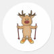 Reindeer as Skier with Skis & Ski poles Classic Round Sticker