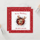 Cute Christmas card with funny reindeer breaking through. Red snowy edges. Easily personalise this Christmas card with your own text. Matching items are available in my store - Kate Eden Art.