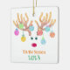 This is a lovely ornament, and great that you personalise the back with details of birthday, weight, etc.. My only tiny disappointment is the "My First" doesn't stand out very well on the background. More than happy with the printing of the photo and the writing on the back.