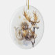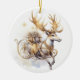 This ceramic Christmas Ornament is shown in a round shape with a white background and a festive holiday reindeer print.