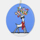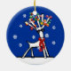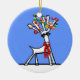 Reindeer wearing christmas lights in his antlers, standing in snow