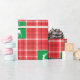 Reindeer Christmas Red Green White Twill Plaid Wrapping Paper