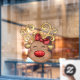 A beautiful illustration of the face of a reindeer in shades of faux gold and red glitter. She is wearing a red bow in her swirly horns and is smiling cutely. This graphic design is ideal for any shopfront window as it allows customers to still see your products without the design obstructing too much of your storefront and brings the spirit of Christmas home.