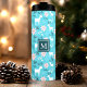 Embrace the holiday spirit with this personalised tumbler featuring a charming pattern of reindeer and poinsettias on a festive turquoise background. The whimsical design, accented with delicate floral details, adds a touch of magic to your favourite beverage. Make it truly yours by adding a monogram or special message. This durable stainless steel tumbler keeps drinks hot or cold for hours, making it a delightful gift or a cherished addition to your own holiday collection.