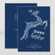 Reindeer Floral | Poinsettia Pine Bough Blue Happy Holiday Card
