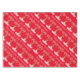 Personalise this Christmas festive table cloth with your own seasonal message and family name, currently reads Happy Holidays from the wisenberger's. Background colour can also be changed to suit the colours in your dining room, currently set to red. Red-nosed reindeer whimsical character art with a festive green & red scarf and over sized large antlers designed by Sarah Trett.
