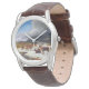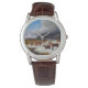 The watch looks really great! Very sharp and well done. The leather band is really nice, though for a man's watch I think it should be longer. Unfortunately, it isn't big enough for my husband's wrist but I will get a replacement because he is very excited to wear it!