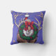 Cute Reindeer holiday throw pillow features our original artwork of a reindeer decked out for Christmas with a bright red and white Santa Claus hat perched between a big rack of antlers. This humourous reindeer stands in a snowy landscape with a textured starry night sky and a fun blue and orange wavy border behind. On many of our unique gifts and accessories you'll find the fun reindeer coming and going with the reindeer's head on one side and the reindeer's backside on the other. This holiday loving caribou is wearing a holly wreath with a bright red bow on his behind. Share a smile today with that reindeer lover, caribou lover, animal lover, wild animal lover, fun artwork lover on your gift list this holiday season.