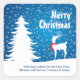 A reindeer wearing a red scarf stops in a snowstorm to reflect upon a lone tree on this sticker. Great for envelope seals or adding to holiday gifts. Available with matching products.