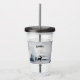 An acrylic tumbler with a watercolor image featuring a black silhouette reindeer standing among some pine trees. Grey black and white neutral colour scheme.