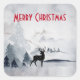 Reindeer in the Wild Grey Watercolor Christmas Square Sticker