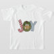 Christmas T-shirts, mugs, cards, stickers, tote bags, magnets, and other Christmas holiday clothing and gift items featuring a reindeer and text that reads "Joy".