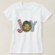 Christmas T-shirts, mugs, cards, stickers, tote bags, magnets, and other Christmas holiday clothing and gift items featuring a reindeer and text that reads "Joy".