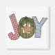 Christmas T-shirts, mugs, cards, stickers, tote bags, magnets, and other Christmas holiday clothing and gift items featuring a reindeer and text that reads "Joy".