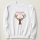 Brown reindeer silhouette with red nose and bold red greeting text, festive and rustic, ideal for holiday apparel and gift-ready prints on winter-themed items.