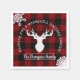 The product design features a silhouette of a reindeer on a classic red and black buffalo plaid pattern. Combined with your own personalised text, this composition makes farmhouse country-style, modern, and unique paper napkins for Christmas holiday or any other winter parties.