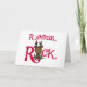 Pretty bright red text that reads "Reindeer Rock" and an adorable reindeer are featured on holiday greeting cards, holiday T-shirts, mugs, tote bags, and more.