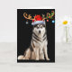 Reindeer Santa Hat Christmas Pajamas Husky Dog Xma Card