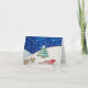 This christmas note card has a cute little Christmas snow scene showing four of santas reindeer grazing near the sleigh that santa has parked up for a while. In the background there’s a snow covered tree on the small hill side. The original snow scene on this christmas note card is painted in water colour. This is a blank christmas note card for you toa add your own hand written personal message.