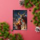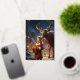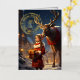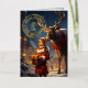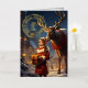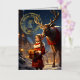 Looking for a personalised card to send with your Christmas gift? Our Reindeer Special Delivery folding card lets you personalise the front with your name and the interior message. It features a young girl dressed in red delivering a Christmas gift with the help of a reindeer friend. They stand in the snow in a town lit up at night as residents walk the streets. The stamp on the front is made with gold foil for that extra special touch.