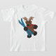The t-shirt feels and looks great quality, a good thick cotton. It will be a little big for my son, but that means he will be able to wear it and not out grow it too soon. The print was as described on the order when personalised. True size, shape and colour T-shirt- thanks.