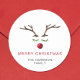 Unique and festive modern holiday mailing or gift sticker featuring an abstract of a reindeer's face composed of watercolors of antlers, green leaves for the eyelashes and a red berry for the nose. "Merry Christmas" is written in red and underneath you can personalise with your family name.