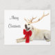 Yellow labrador retriever wears his big red Christmas bow and reindeer antlers to wish a Merry Christmas photo Christmas postcard. Text can be easily changed, removed or added to