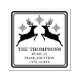 Destei's festive silhouette design of two reindeers together with some snowflakes. There are also two personalizable text areas and the design is framed by a rounded border.