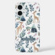 An elegant iPhone case features an watercolor illustration pattern of reindeers in the inter forest.