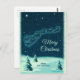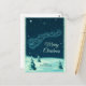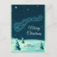 A Merry Christmas holiday greeting postcard with a vintage illustration of Santa in his sleigh being pulled by his reindeers. Little stars sprinkle the night sky. Snow covered pine trees on the ground. Vintage retro feel. Personalised name on the front and personalised message on the back.