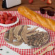This paper plate features reishi mushroom all cut up ready to make tea. There are napkins to match.