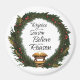 a stunning wreath adorned with holly and pine cones, the image also showcases the Nativity scene, a reminder of the true spirit of Christmas.