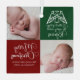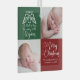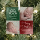 Beautiful red and green personalized Christmas photo ornament for a family member like Grandma or Grandpa. Customize this holiday gift with your kids photos next to the beautiful angel flying over the words A Thrill of Hope the Weary World Rejoices. Rejoice and add your custom loving message under Merry Christmas in lovely white calligraphy.