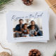 Blue 1-photo religious Christmas card featuring "rejoice in the Lord" in a modern handwritten typeface. The back of the card has room to enter your own message.