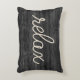 "Relax" text in nautical rope design on dark grey barn wood background.