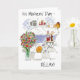 A handpainted watercolour painting for Mother's Day with a woman relaxing in a bubble bath with a good book, wine, candles, flowers and music. Blank inside for your own message