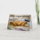 A birthday greeting card for cat lovers featuring a lazy ginger cat relaxing on a bed