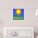 A large and colourful poster with a big smiling sun and beneath it the word 'relax'. Designed to bring calmness and a warm feeling.