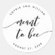 Wedding sticker featuring the words "meant to bee" in a relax cursive script in black against a white background.