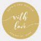 Wedding favour sticker featuring the words "with love" in a relax cursive script in white against an editable background colour (click customise to access).