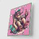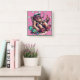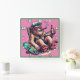 Relaxed creature enjoying a party on a skateboard square wall clock