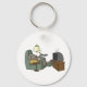 A very relaxed dog sitting watching television. This design looks really effective on these Keychain