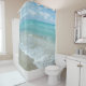 Imagine a private island getaway every morning with this scenic beach ocean view shower curtain, white sand, clear blue water and sunny blue sky make the perfect travel vacation scene with waves crashing on the shore.