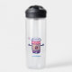 The bottle looks even better in real life. The ice cubes I put in lasts all day! I have my bottle with me all the time. It's summer and having something cold to drink feels amazing. With this bottle I always have something super cold. I have only tried the hot drink once and it lasted a long time as well. The color blue is a navy blue and the white printed on it is vibrant. It printed perfectly. I love my personalized smile water bottle.