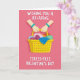 This card shows a bright yellow laundry basket filled with neatly folded clothes in light blue, deep purple, and soft pink. Two stylized hands hold the basket handles, and each wrist has teal bangles that stand out against the rest of the colors. The background is a solid bubblegum pink, giving the whole scene a warm, upbeat feel. The basket and fabrics look simple and tidy, with gentle shading underneath to add a little depth. In white, slightly textured lettering around the main image, the card reads, “Wishing you a relaxing, stress-free Valentine’s Day.” The message feels sweet and caring, like a reminder to slow down and take care of yourself ❤️💌🍫. Hope you can pass along some kindness and affection this Valentine’s Day.