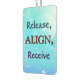 Refresh your space and your mindset with the Release, Align, and Receive Car Air Freshener—a simple yet powerful reminder to let go, find balance, and welcome life’s abundance. Designed to bring a sense of calm to your daily drive, this air freshener infuses your car with a soothing scent, helping you shift your energy with every breath.