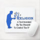 A magician spews the symbols of major religions from his lantern and is illustrated with the saying "Religion, a tool invented by the powerful to control the stupid."